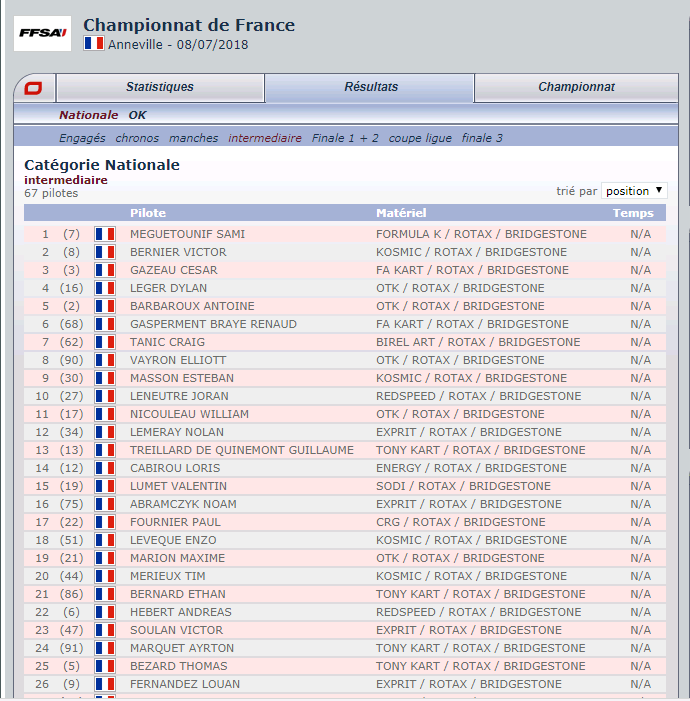 RESULTAT APRES LES MANCHES